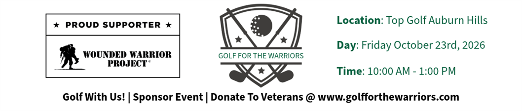 Join us for an engaging Top Golf tournament dedicated to supporting our brave veterans! Your donations to The Wounded Warrior Program make it possible to provide life-changing services to veterans and their families at no cost to them.